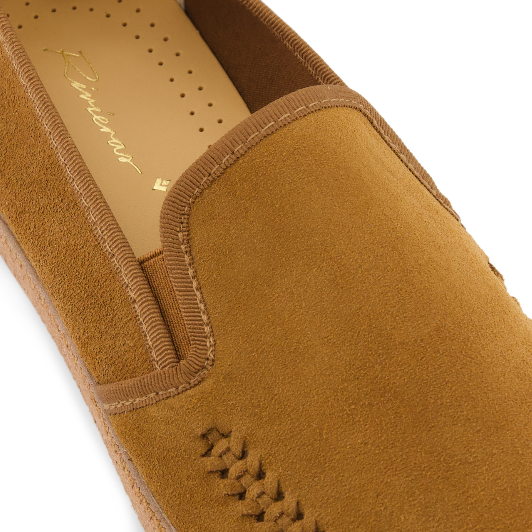 Step into laid-back style with our Woven Suede Moccasin, crafted in Spain from premium split suede. The handwoven toe detail adds texture and character, while the soft canvas lining ensures all-day comfort.